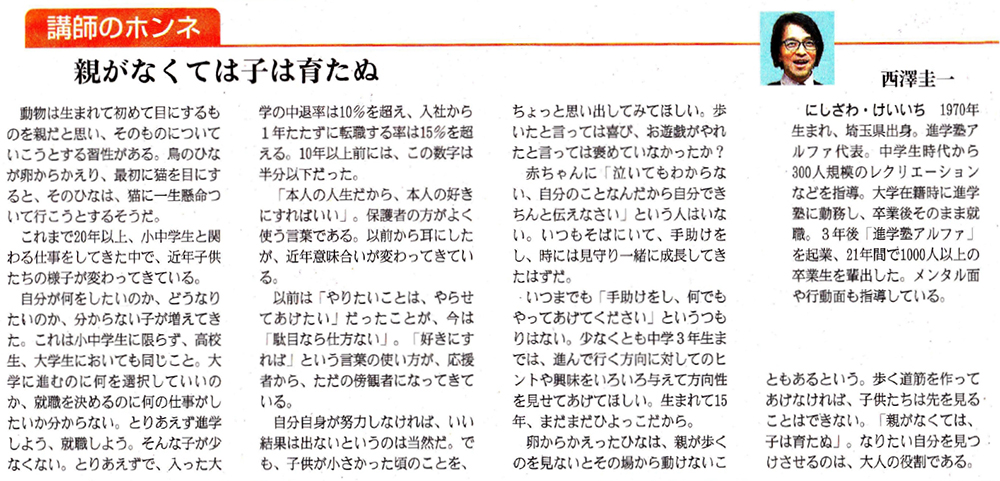 新聞のコラム執筆の他、テレビ・ラジオなどでも活躍中。